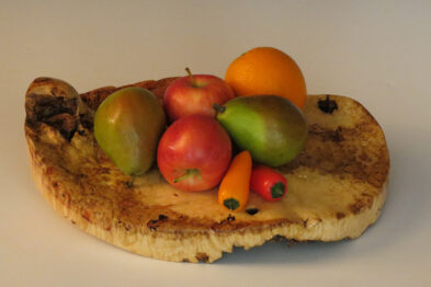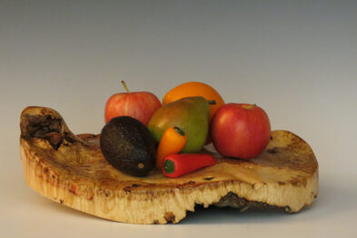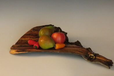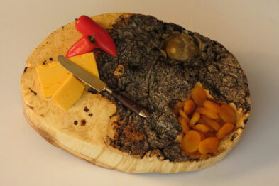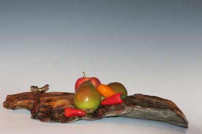 Cottonwood burl with bronze lady bugs (shape – platter style).